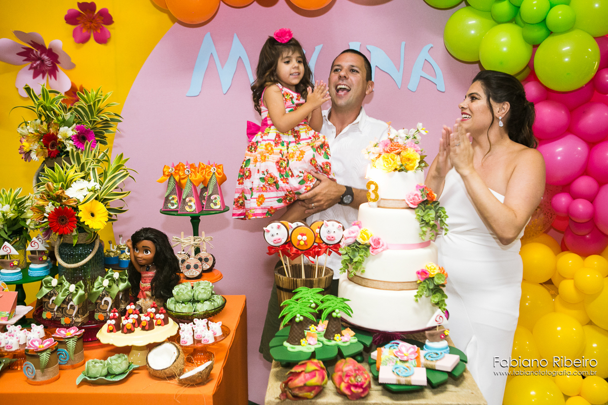 Apaixonados pela natureza e pelo mar essa família linda comemorou o aniversário de 3 anos da Melina com o tema Moana. Melina é menina sapeca, não quer saber de poses e fotos não, ela quer brincar, aproveitar e curtir seu dia junto de seus amigos e familiares. Ela correu, pulo, gargalhou e brincou muito fazendo desse dia um momento pra lá de especial.